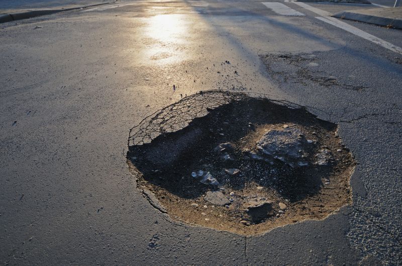 - Visible potholes: Even small potholes worsen quickly and can damage vehicles.